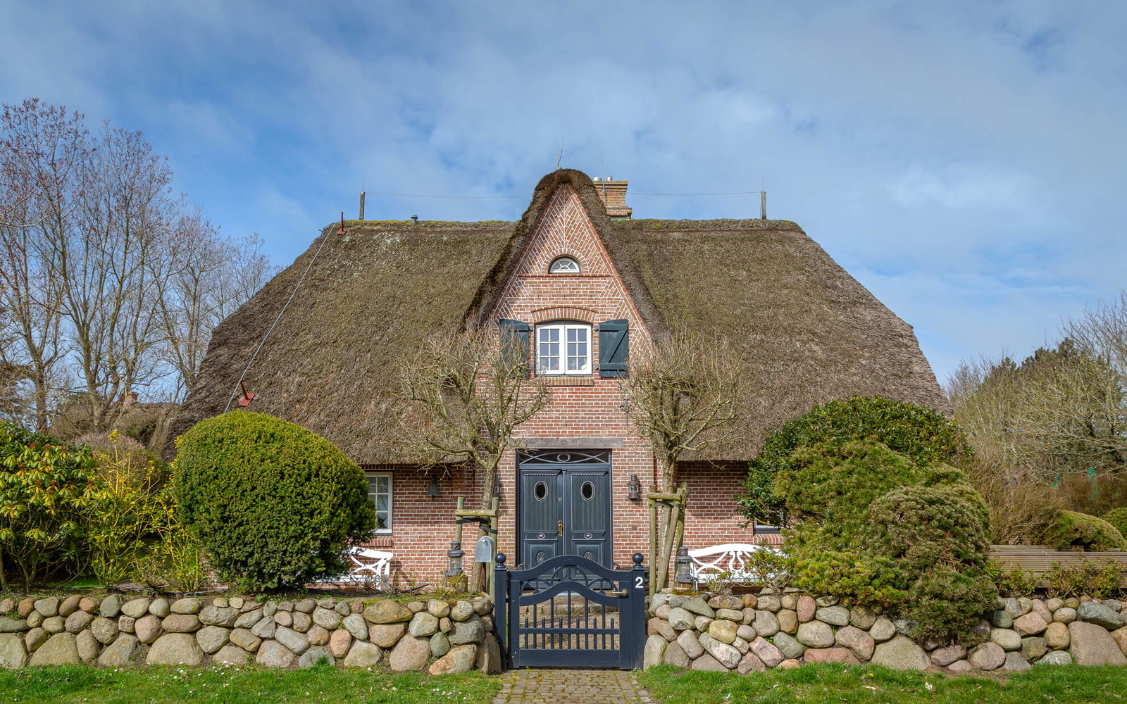 Doppelhaushälfte unter Reet mit traumhaftem Wattblick. Das Haus mit einer Gesamtfläche von ca. 140 m² liegt auf einem ca. 532 m² großen sonnigen romantisch eingewachsenen Grundstück nahe der Braderuper Heide. Das angebotene Haus wurde im Jahre 1992 erbaut und präsentiert sich mit seinem antiken Klinker und Holzsprossenfenstern in klarer friesischer Architektur.