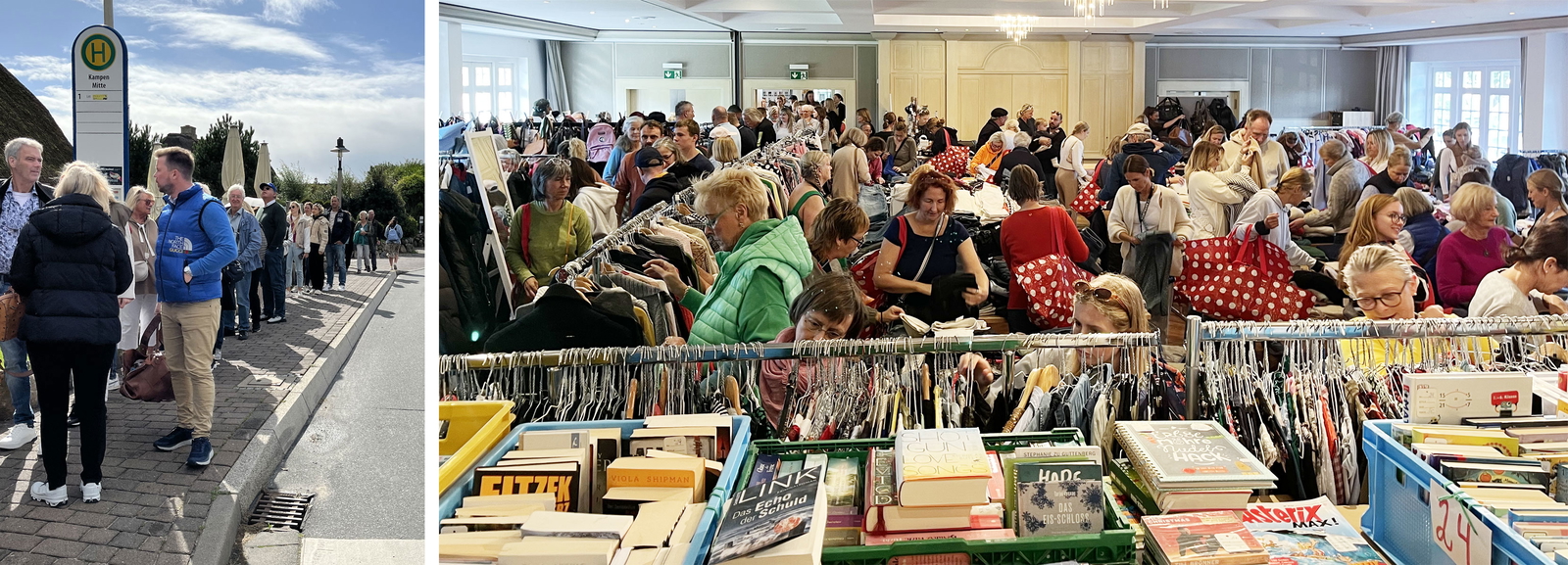 Der »Second Hand Markt« im Kaamp-Hüs ist ein glänzendes Beispiel dafür, wie Kampen als Dorf funktioniert. Wie lebendig das Miteinander ist – trotz aller Veränderung. Beim zweimal im Jahr stattfindenden Shopping-Großvergnügen kommt alles Gute zusammen: ehrenamtlicher Einsatz, Solidarität mit Hilfsbedürftigen, Großzügigkeit, Geselligkeit und nachhaltiger Konsum. Und der Markt der Märkte zeigt, was sich in kürzester Zeit bewegen lässt, wenn ein Team über Jahrzehnte Abläufe perfektioniert hat und für den guten Zweck Expertise und viel Zeit zur Verfügung stellt.